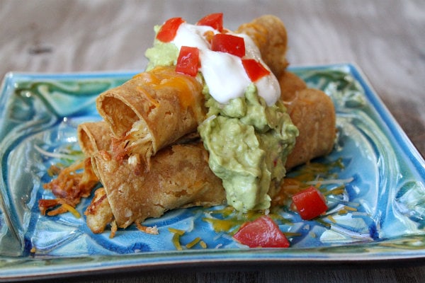 This easy chicken taquitos recipe for softened corn tortillas stuffed with shredded chicken and melty cheese can be fried or baked.